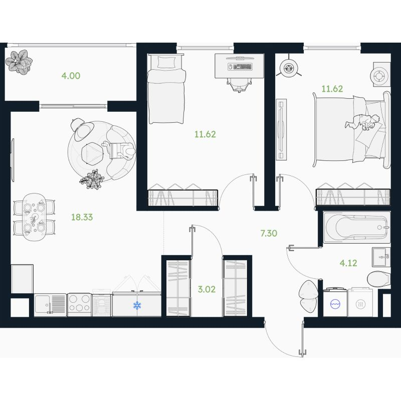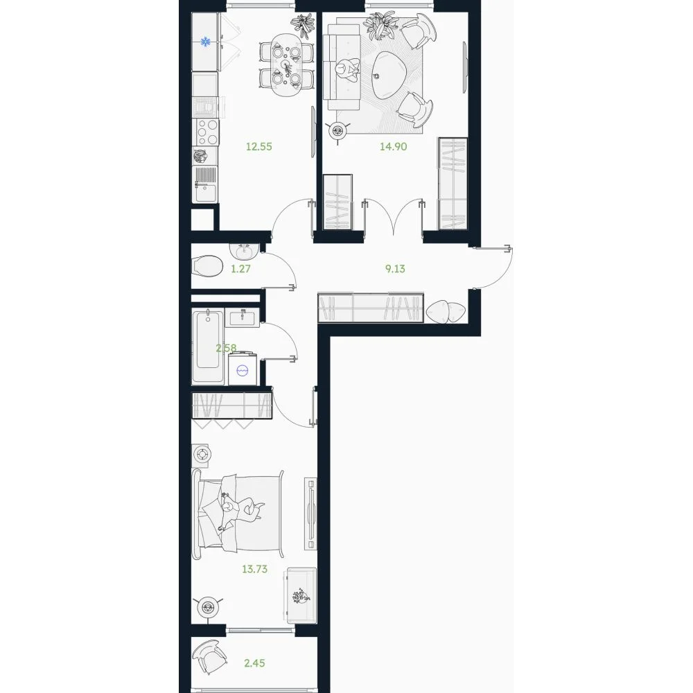 1-комнатная 56.72 м
