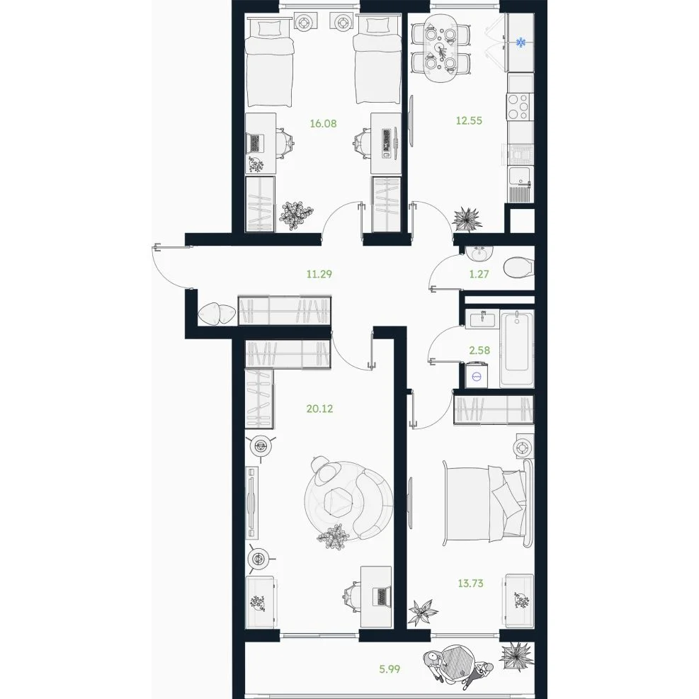 3-комнатная